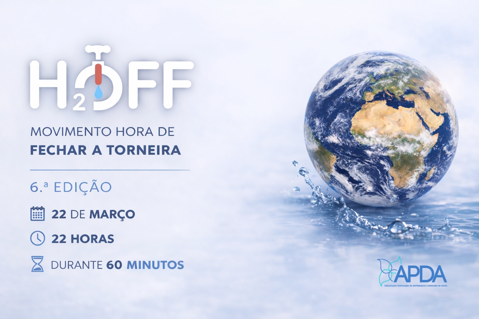 A iniciativa desafia a sociedade a adotar um gesto simbólico coletivo: fechar a torneira durante uma hora, às 22h00, no dia 22 de março, promovendo a reflexão sobre o valor da água e a importância da sua gestão sustentável.
